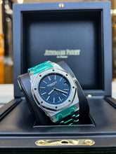 This "Jumbo" model pays tribute to the original Royal Oak 5402 from 1972 with its body of hand-finished steel and its Bleu Nuit, Nuage 50 “Petite Tapisserie” dial. It houses the new selfwinding movement, Calibre 7121, fitted with the rhodium-toned pink gold "50-years" oscillating weight.